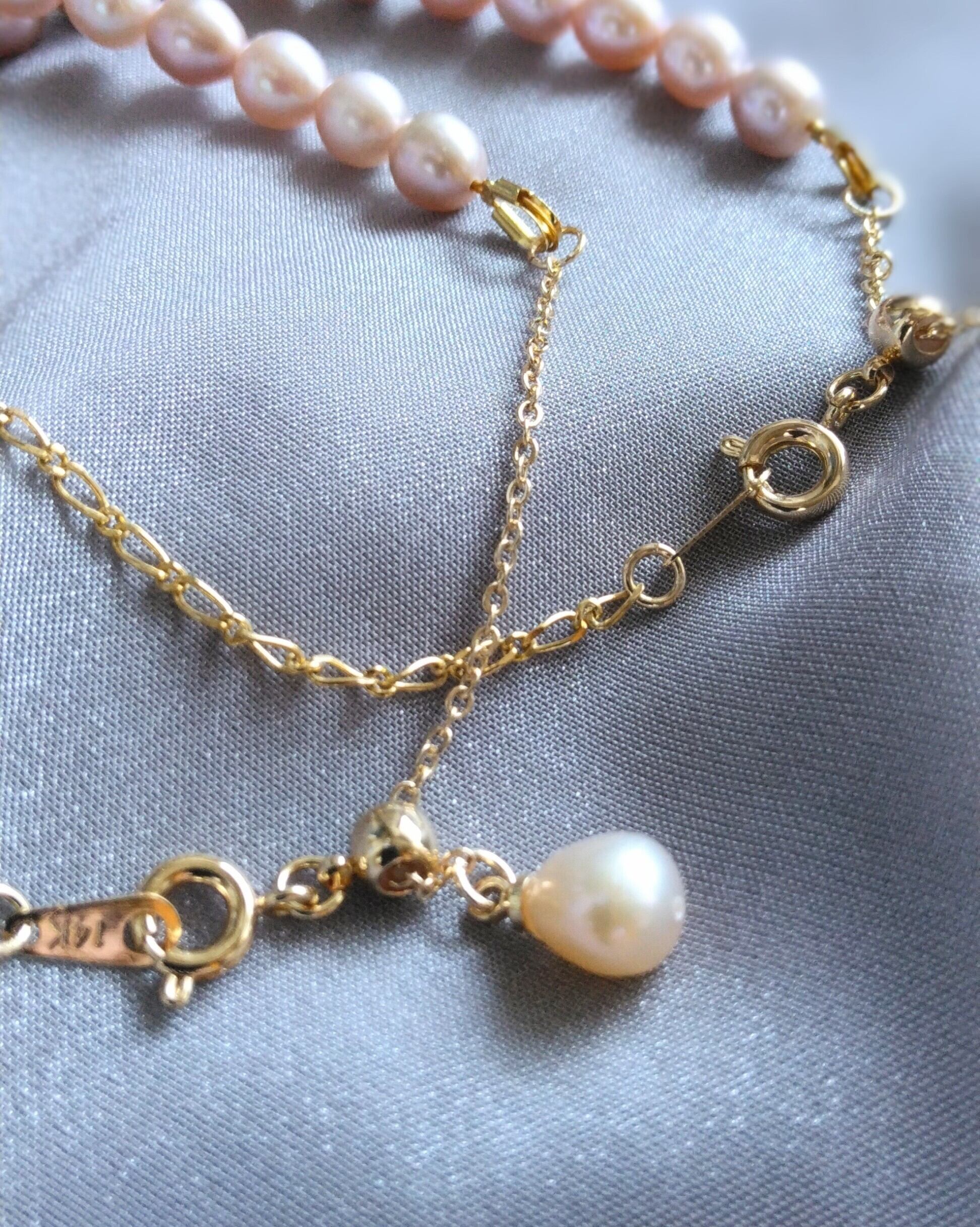 青みのあるピンクの美しい輝きをアジャスター付きのチェーンで