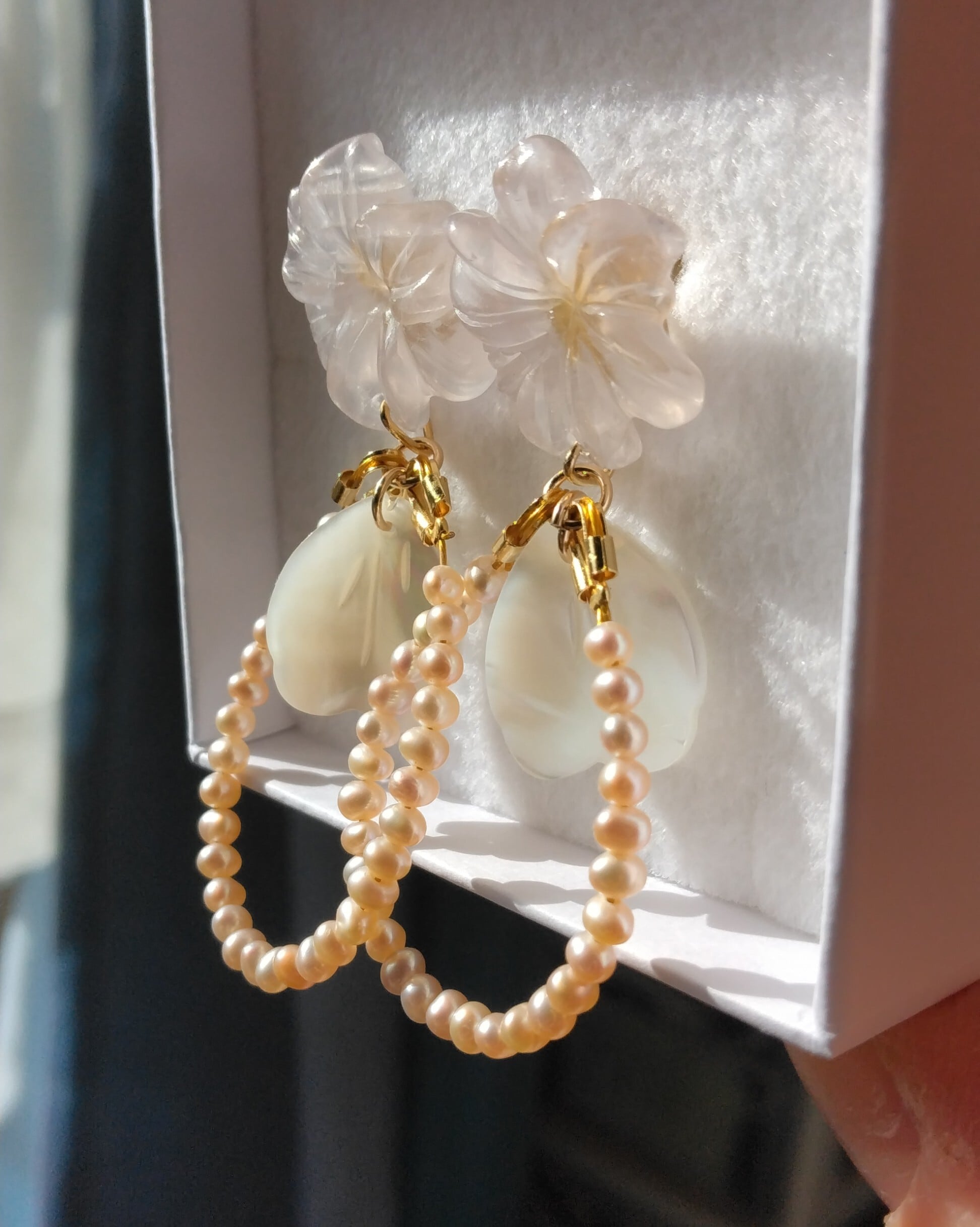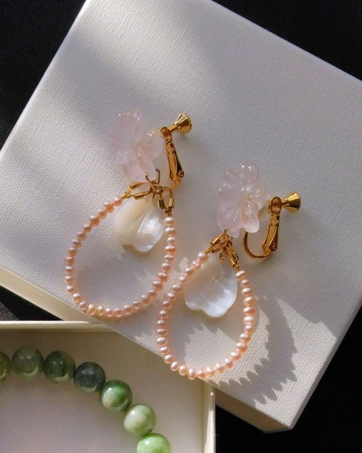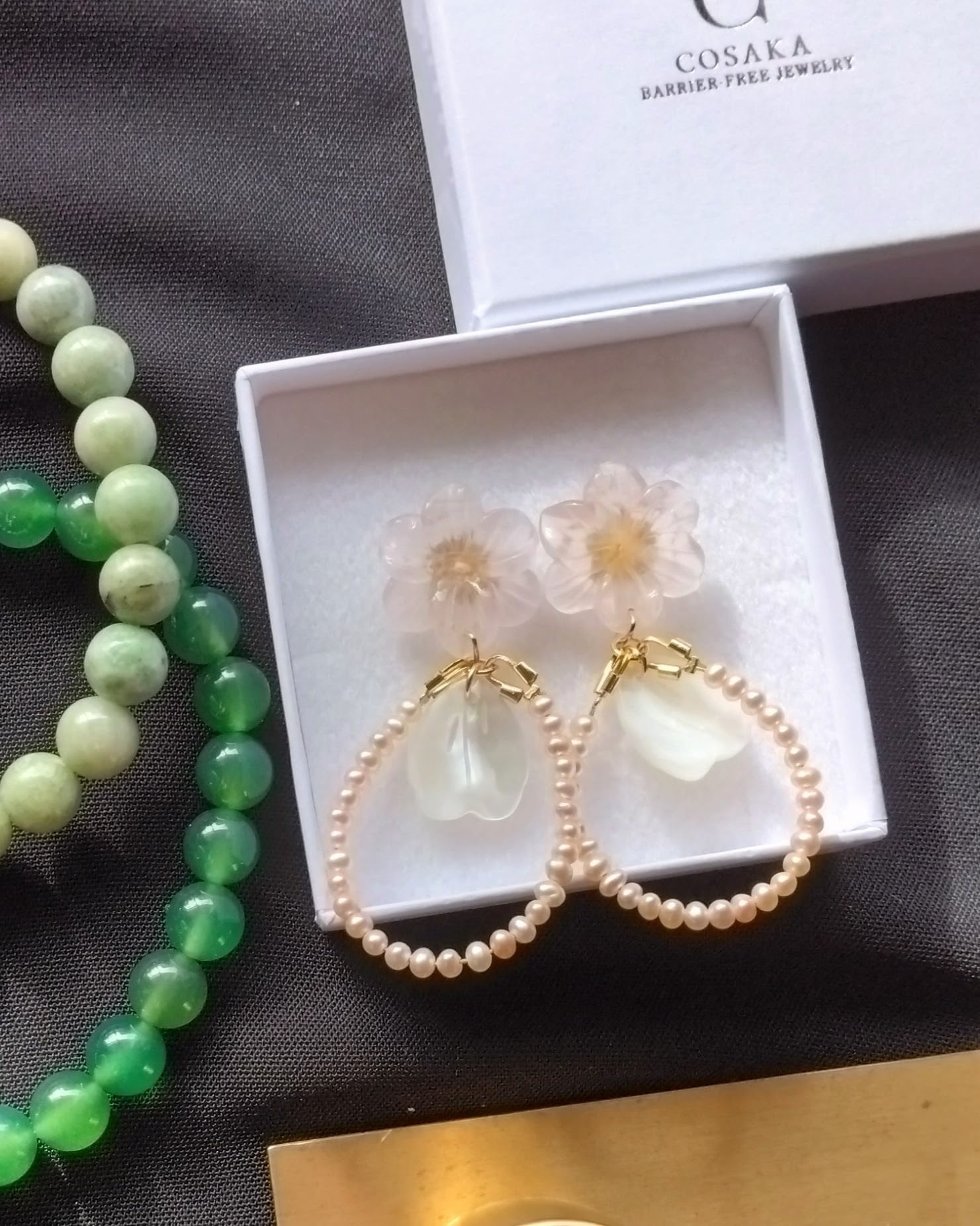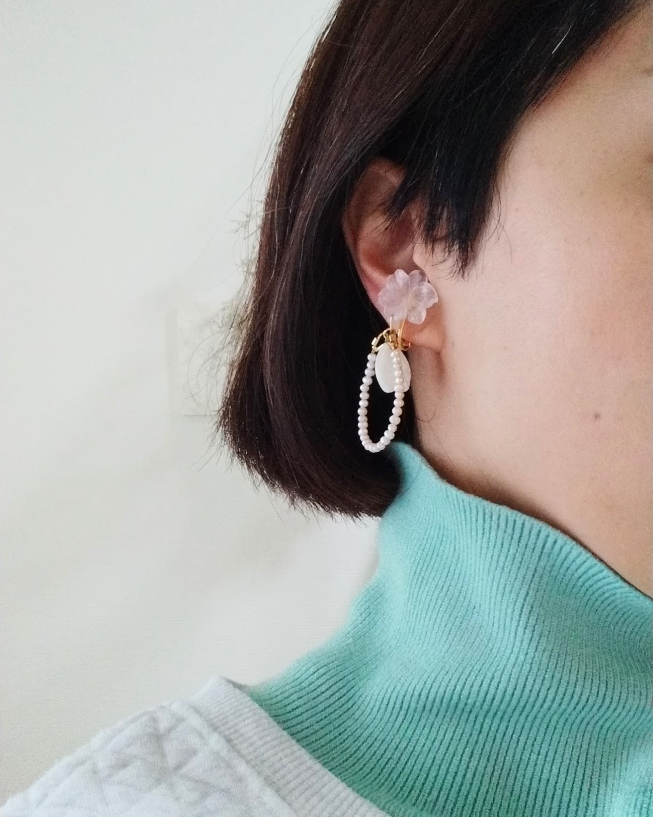 梅の花色のイヤリングもまた、初春を思わせる華やかなアイテム