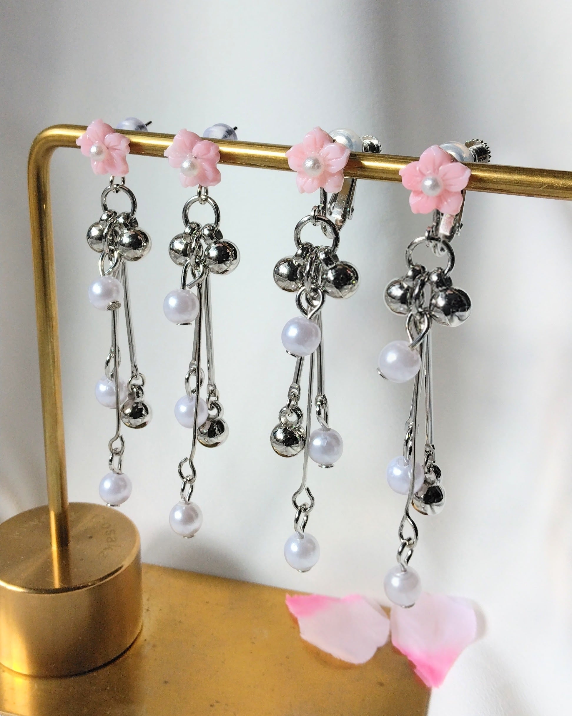 桃の花色のイヤリングもまた、初春を思わせる華やかなアイテム