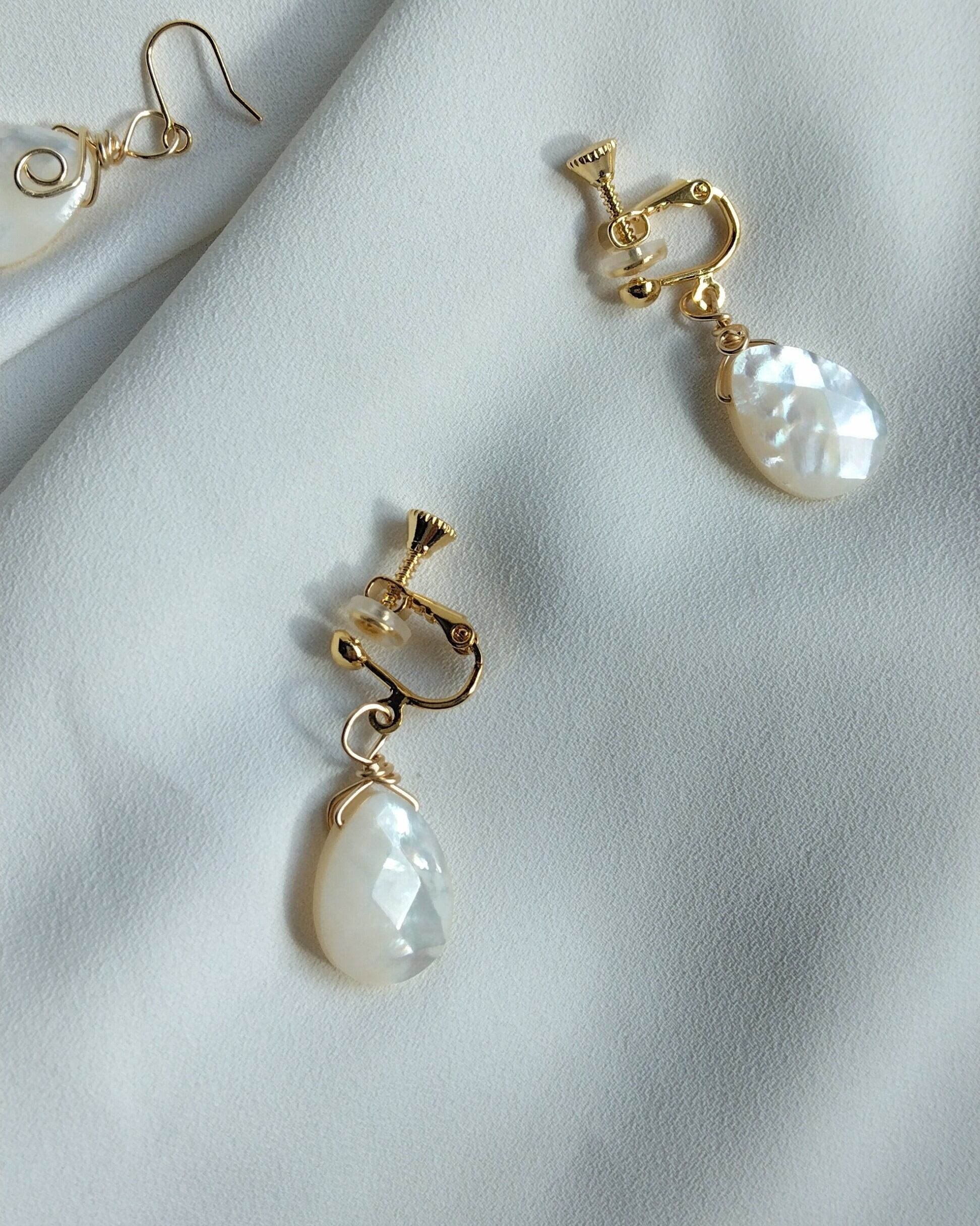 同じマザーオブパールを使っているイヤリングと合わせれば、コーデに統一感が出てさらにプレゼントにもおすすめです。