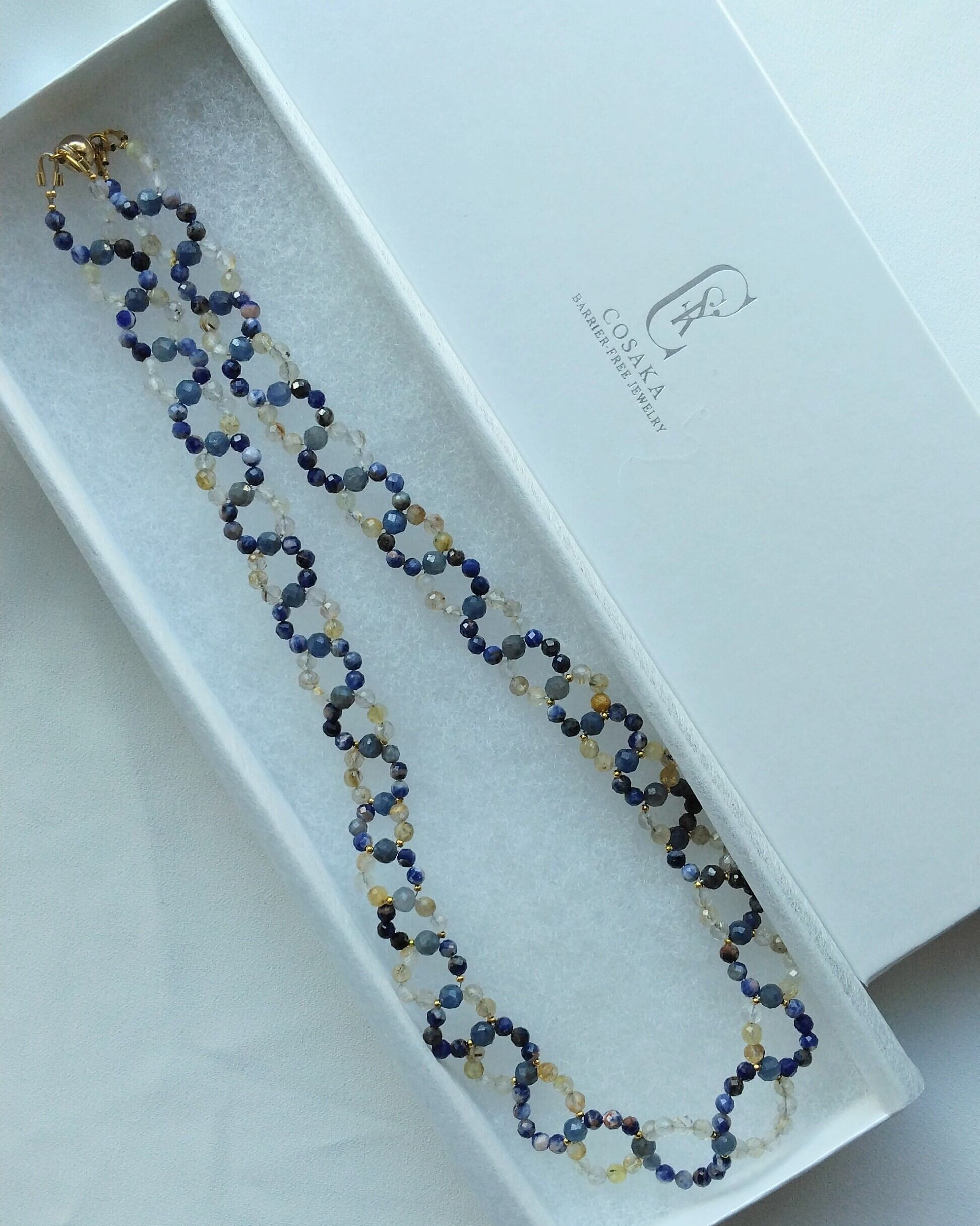やや個性的なネックレスとなりましたが、マグネットで着脱簡単、デコルテにしっくりと沿う柔らかさを実現しました。