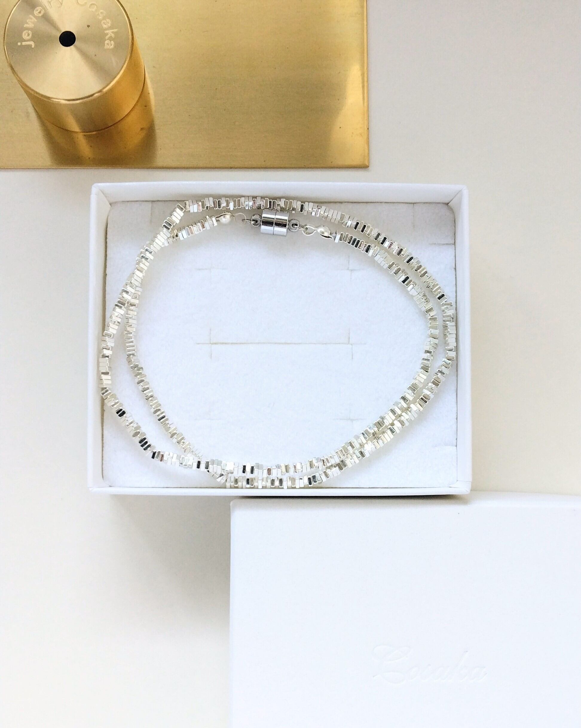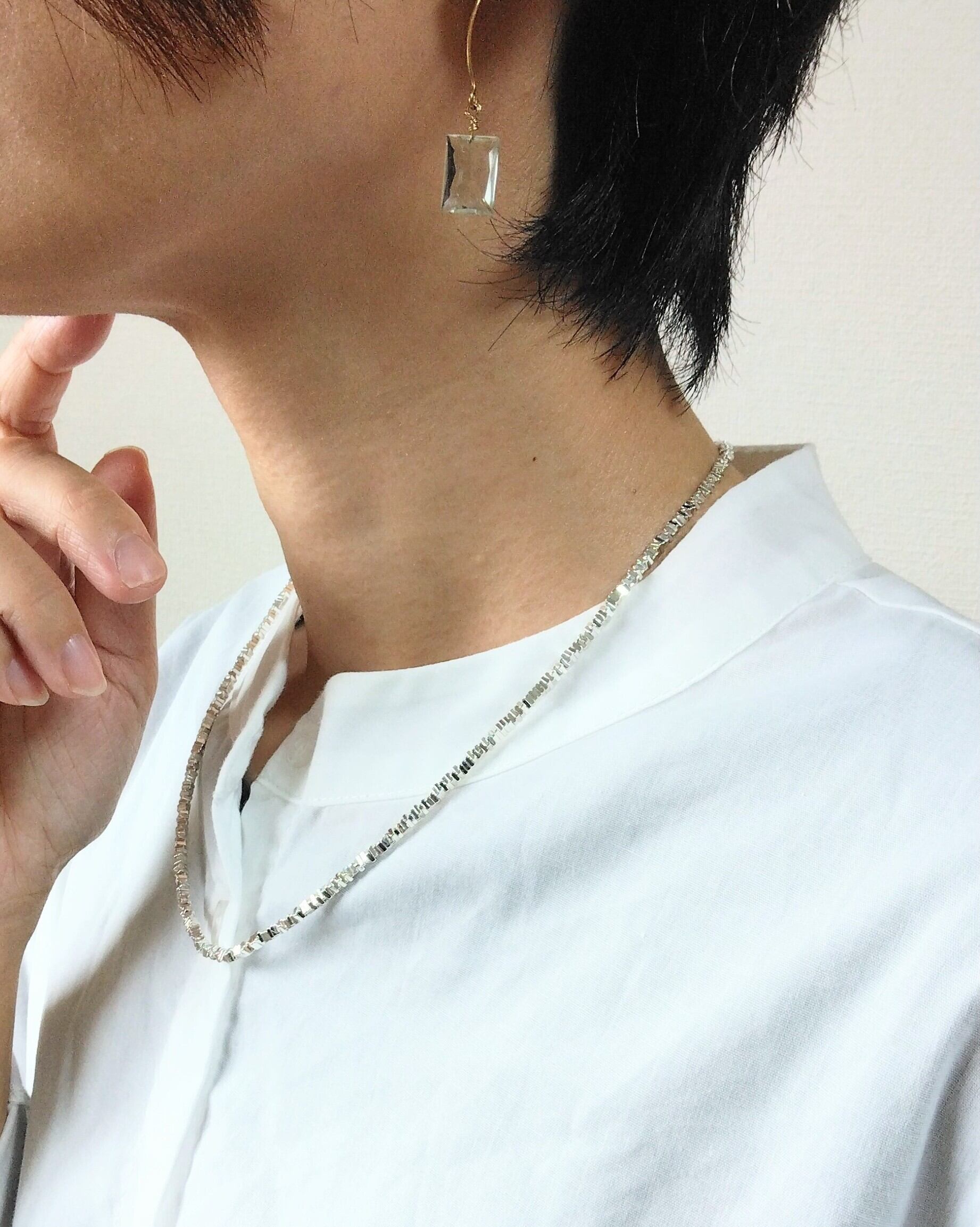 ▽取り扱い 全ての貴金属にいえることですが、使用後は柔らかな布で皮脂を拭き取ることにより酸化を防げます。保管は日の当たらないところに保管してください。商品の長さは若干の誤差が生じる場合がございます。強い力を加えたり、濡れたまま放置すると変色や破損の原因になる可能性がありますので、ご注意ください。