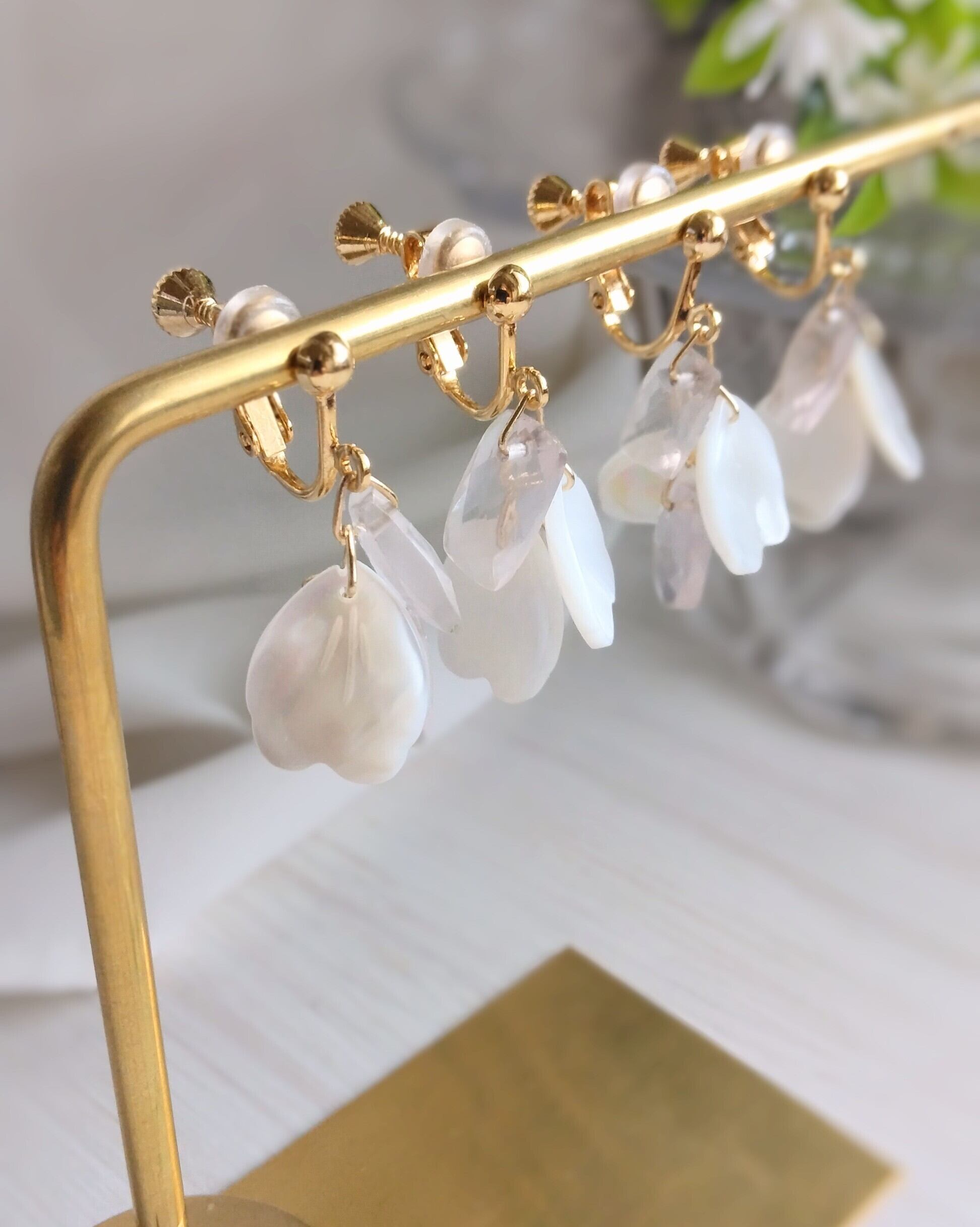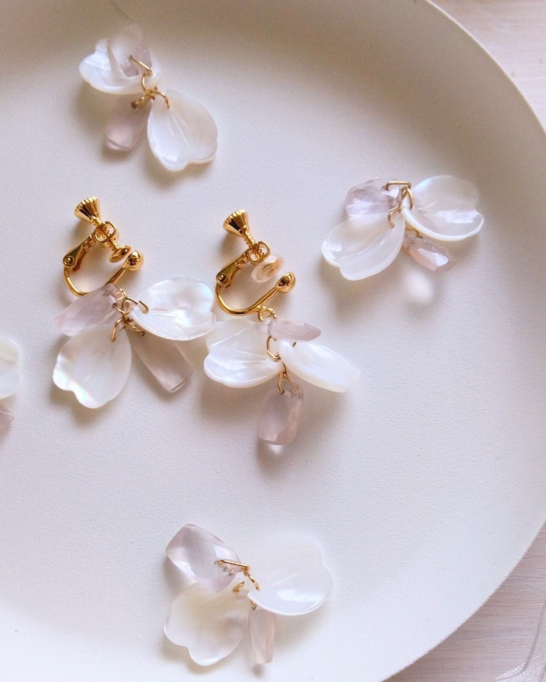 白蝶貝のサクラの花びらと淡いローズクォーツ